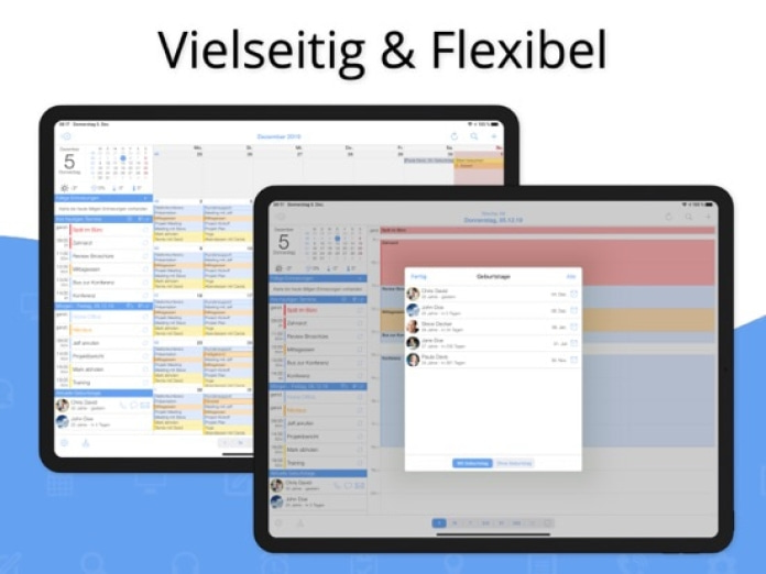 Navigieren Sie intuitiv innerhalb des Kalenders und legen Sie schnell Termine und Aufgaben an, dank vordefinierter Einstellungen und einfacher Bedienung. Standardeinstellungen wie Wiederholungen und Erinnerungen/Alarme sind nur einen Fingertipp entfernt. Ohne Kompromisse an Komfort und Bedienung sind wie gewohnt auch Spezialeinstellungen möglich.