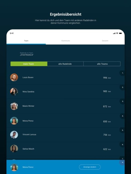 Vergleiche dein Team innerhalb deiner Kommune mit anderen Teams.